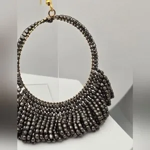 Ink + Alloy Handmade Beaded Hoop Earrings Matte Silver Lightweight Boho 3”
