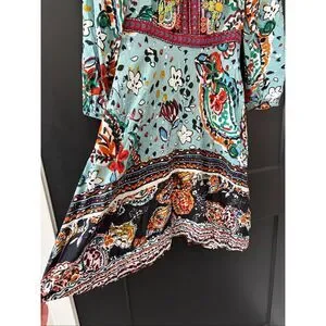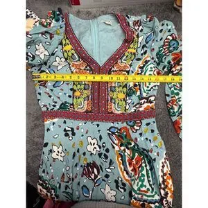 Akemi + Kin Embroidered Beaded Floral Midi Dress Boho Anthropologie Style Small