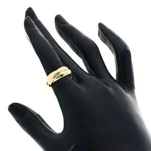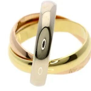 This is an authentic Cartier Trinity 48 Ring in 18K yellow, white, and pink gold. The iconic Cartier Trinity design features three interlocking bands in a sleek, modern silhouette.