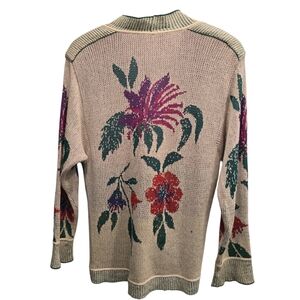 Bogner Vintage Floral Embroidered Beige Cardigan Soze 6 Cotton/Silk