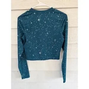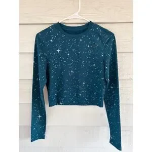 Nike Dri-Fit Cropped Long Sleeve Top Star Print Teal Athletic Shirt Size Small