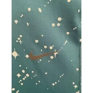 Stylish Nike Dri-Fit cropped athletic top featuring a unique star and constellation print on a teal background. Made with moisture-wicking fabric to keep you comfortable during workouts while still looking cute for athleisure outfits.