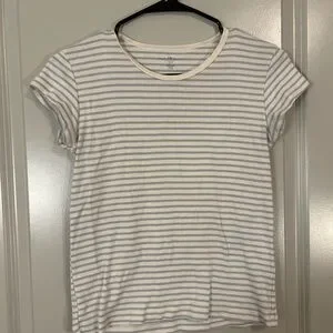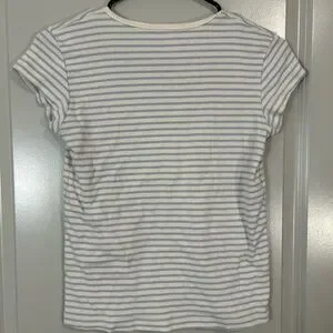 This fitted t-shirt from Brandy Melville features a classic white and gray stripe pattern with cap sleeves, offering a timeless and comfortable style for any casual occasion.