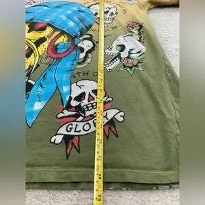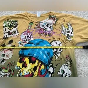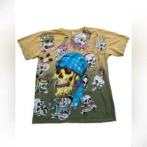 Vintage Y2K Ed Hardy Christian Audigier Men’s Size Extra Large XL AOP rare print Skull Graphic Tee.