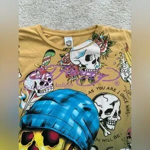 Vintage Y2K Ed Hardy Christian Audigier Men’s Size Extra Large XL AOP Skull Tee