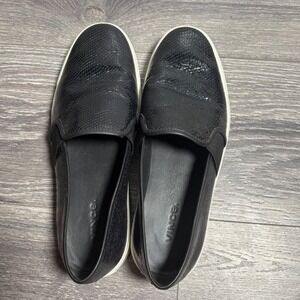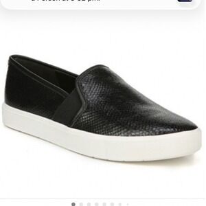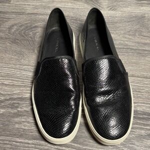Vince Blair 5 Black Snake Print Slip On Sneakers Womens Size 8.5 Low Top Leather