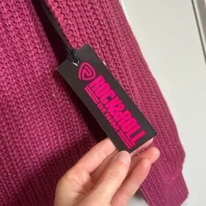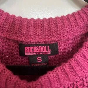 Pink rock and roll denim knit sweater