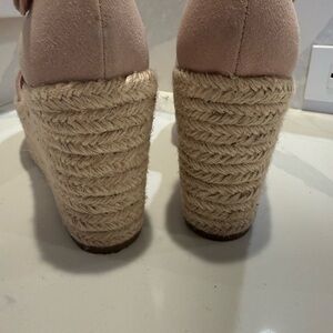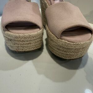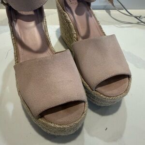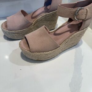 Marc Fisher Size 9 Mlalita Blush Suede Leather Upper Espadrille Wedge Sandals