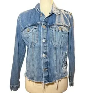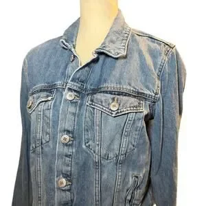 Lucky Brand Raw Hem Denim Trucker Jacket, Cotton Tencel Blend, Women's Large