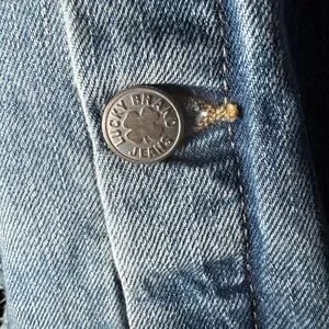 Lucky Brand Raw Hem Denim Trucker Jacket, Cotton Tencel Blend, Women's Large. Please note measurements below! Combines a classic trucker silhouette with a modern, edgy raw cutoff hem. Made from a premium blend of Cotton and Tencel, it offers a much softer feel and better drape than standard 100% cotton, making it perfect for comfortable, all day layering. Medium wash with light fading and whiskering. Four pocket design with two button flap chest pockets and two side welt pockets. Silver tone Lucky Brand clover logo buttons. Excellent condition. #Streetwear #CoastalCowgirl #Western #Edgy #Tencel #TruckerJacket