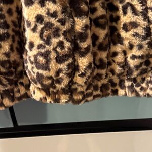Leopard Print Faux Fur Teddy Jacket XL Cozy Animal Print Hooded Coat