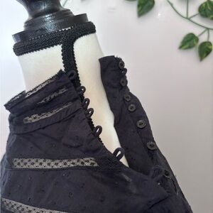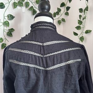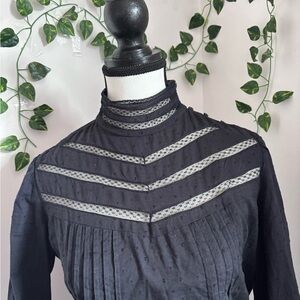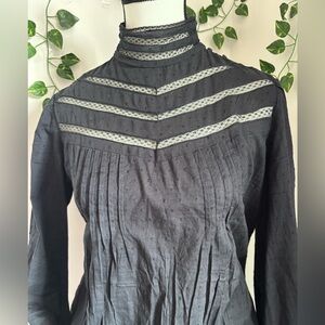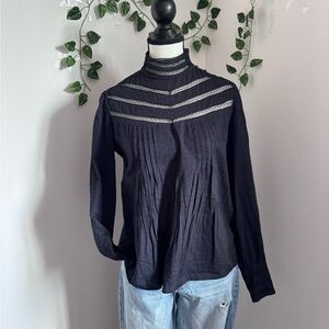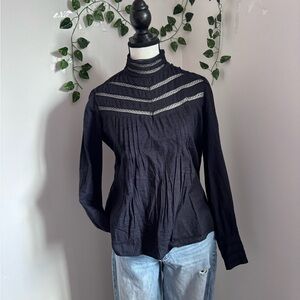 Women's Black Lace-Trim High-Neck Long Sleeve Blouse