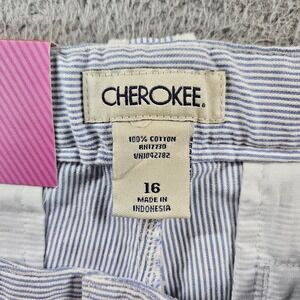 NWT Cherokee Pants Women Size 16 30x30 Adjustable Waist Blue White Striped