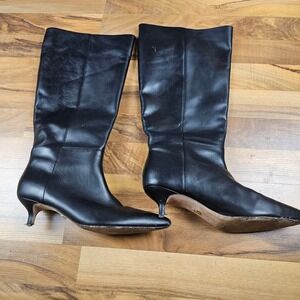 Veronica Beard Lisa Knee High Leather Boots Kitten Heel Black 10M Wide Calf
