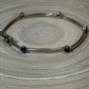 Dainty Elegant sterling silver bangle bracelet with Amethyst stones. Simple design that complements any outfit. Lightweight and easy to wear for everyday or dressy occasions.