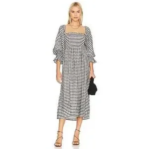 Sleeper NWT Gingham Linen Atlanta Midi Dress Medium