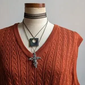 Vintage Silk Sweater Vest Cable Knit Sweater Vest Rust Orange Grandpa Cottage Preppy Top XL