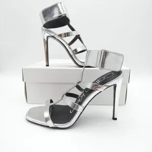 Calvin Klein Dolcita Metallic Silver Strappy Stiletto Sandals 6M 34E5956-SLV