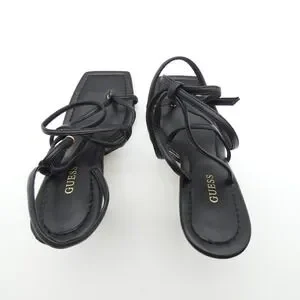 GUESS Leeba Black Strappy Square Toe Wrap Around High Heel Sandals 6.5M NEW