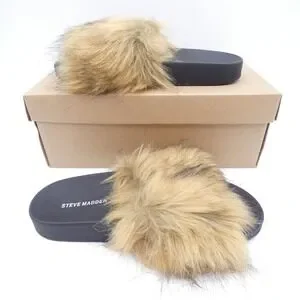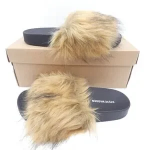 Steve Madden Shaggy Brown Multi Faux Fur Slide Sandals SHAG01S1 Womens 9