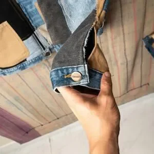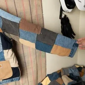 Reconstructed using vintage denim, canvas, and workwear scraps.
