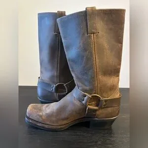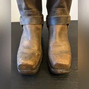 Frye Harness 12R Brown Leather Boots Square Toed Women’s Size 10 M