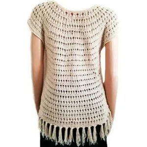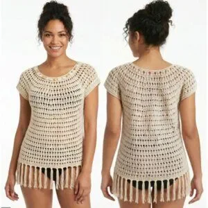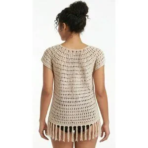 Ruby Rd. Women's Crochet Knit Fringe Tassel Hem Swim Cover-Up Top Size Medium