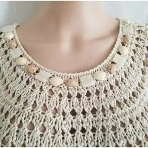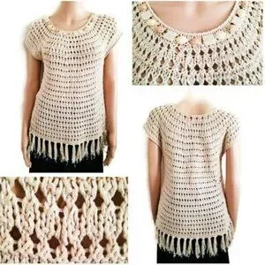 This stylish summer cream crochet top is so pretty, with a breathable cotton finish, the tassel trim beach style will team perfectly with your favorite swimwear. Perfect for transitioning effortlessly from swimwear cover-up to a casual daytime outfit with sandals and accessories.