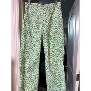 BDG Urban Outfitters Green White Daisy Floral Wide Leg Pants High Rise Button 26