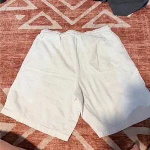 Soft white terry cloth shorts with elastic waistband. Single back patch pocket. Comfortable, relaxed fit for everyday wear.
