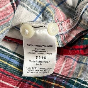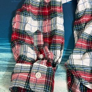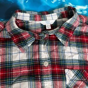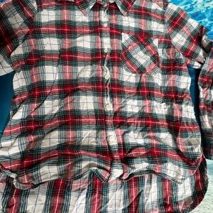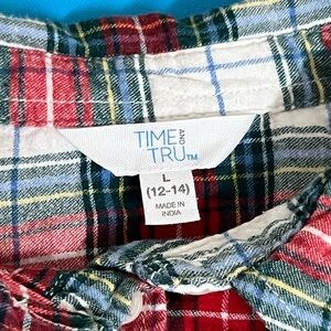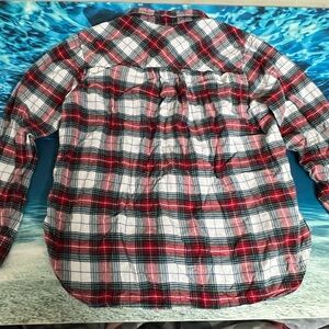 ☀️Time and Tru Red, White & Black Plaid Button-Down Shirt Long Sleeve Flannel