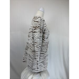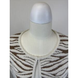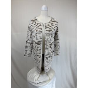 NWT Kamana "Fur" Ivory/Brown Zebra Striped Long Open Cardigan Sweater #0685 LG