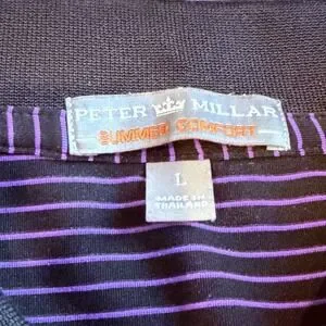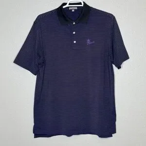 Peter Millar Polo L Purple Stripe St Andrews Logo Golf Shirt Summer Comfort