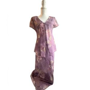 Vintage Jessica Howard Purple Floral Maxi Dress | 90s Chiffon Overlay | Size 8