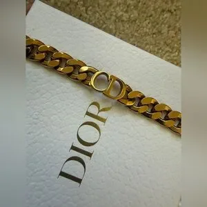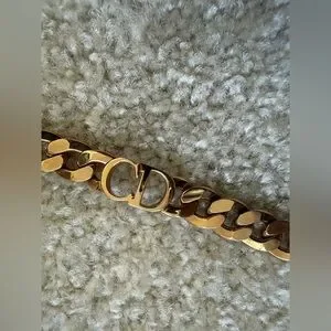 Gold-tone chunky link bracelet with CD centerpiece. Polished finish for a refined look. Lobster clasp with logo disc charm.