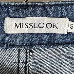 Misslook Floral Blue Jeans Straight Leg High Waist