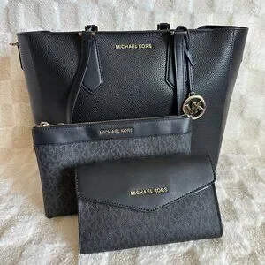 NWT! MK Michael Kors Kimberly 3 In 1 Set Black Leather Tote/Crossbody/Clutch