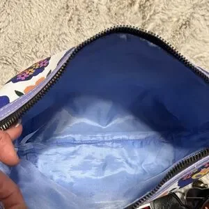 Bouffants & Broken Hearts Floral Cosmetic Bag - White with Purple Floral Print