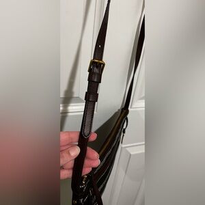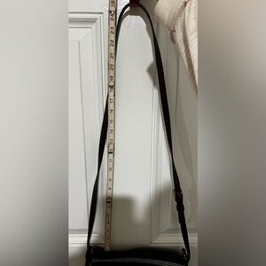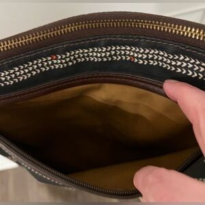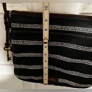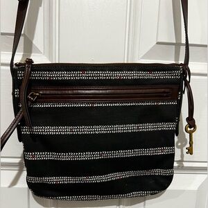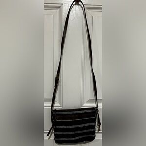 FOSSIL Fiona Crossbody Bag Black White Geometric Pattern Brown Leather Strap