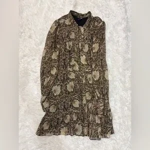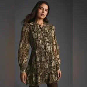 Anthropologie Paige Long-Sleeve V-Neck Dress Silk Brown Pattern