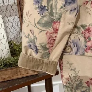 Vintage 1990s Coldwater Creek Floral Barn Chore Jacket with Corduroy Detail