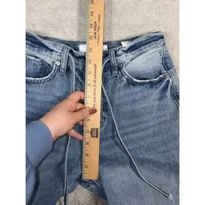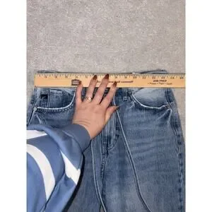 The Kancan wide leg drawstring jeans in size 25 are a stylish and comfortable choice for women looking for a trendy addition to their wardrobe. With their wide-leg silhouette and drawstring closure, these jeans offer a unique and flattering fit. The blue color adds a classic touch to the overall look, while the brand's reputation ensures quality and style. Perfect for everyday wear or dressed up for a night out, these jeans are a versatile and fashionable choice for any occasion.