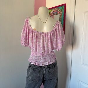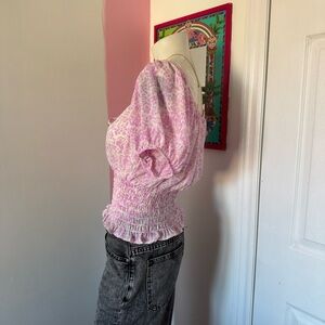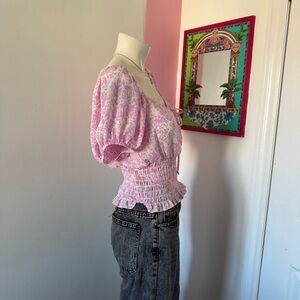Sienna Sky Pink And White Floral Smocked Tie Detail Short Sleeve Top