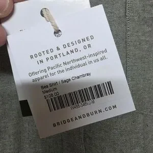 Bridge & Burns The Bea Short Sleeve Button Up Shirt Sage Chambray Sz M NWT $108