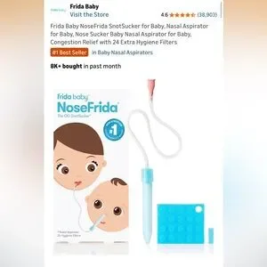 Fridababy NoseFrida nasal aspirator. Box shows product and branding. Gentle, effective design for baby care. New in box, about 10 available (got them as gift for guests)