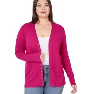 Snap Sweater Cardigan in Magenta