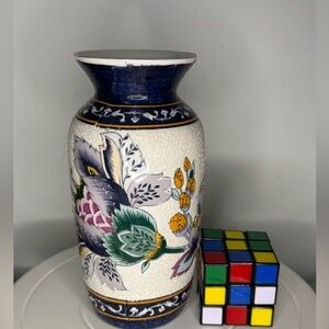 7.5” tall vase with textured painted Asian floral design