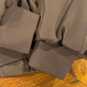 Lightweight brown bomber designed for everyday wear. Features a full zip front and ribbed collar, cuffs, and hem for a secure fit. Two front zip pockets provide practical storage. Subtle tonal logo detail for a low-key finish. Make an offer