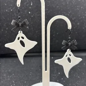 Get into the Halloween spirit with these charming Ghost earrings! 👻 Featuring a playful little ghost adorned with a sleek black bow, these dangles are perfect for spooky season or adding a fun, whimsical touch to any outfit. Lightweight and comfortable, they make a subtle yet festive statement.