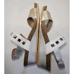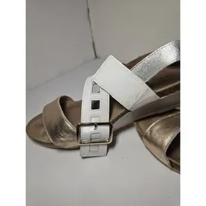 Naot Womens Dynasty Sandals EU 41 US 10 Rose Gold White Leather Wedge